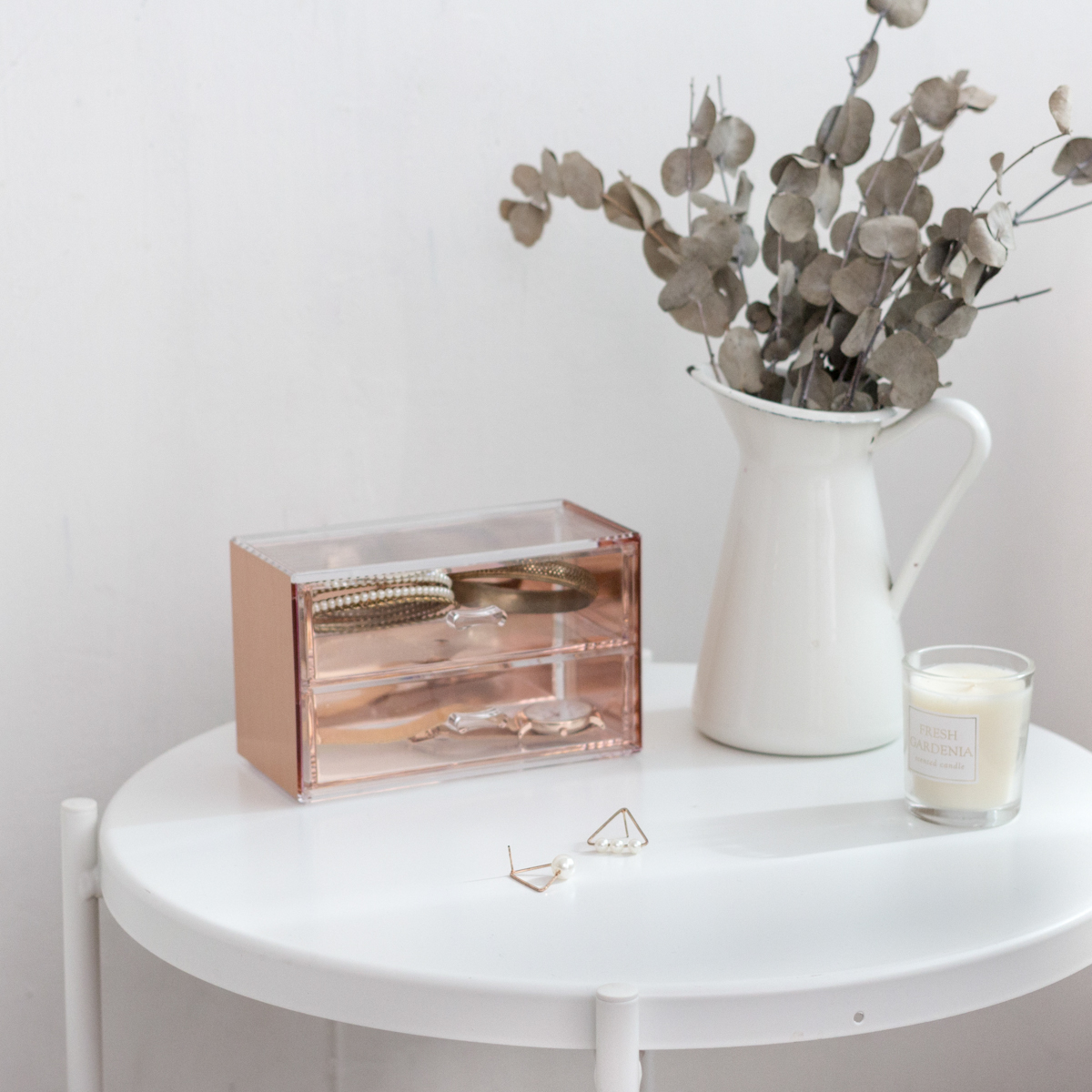 玫瑰金小抽屜可收納飾品小物。擺在桌上就像漂亮擺飾一樣的存在