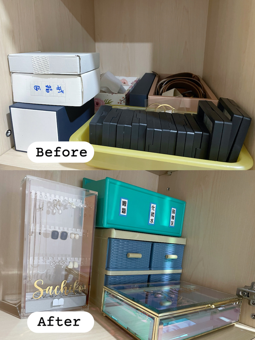 放入飾品前,一定要來一張BA照給大家比對,放完後,發現能擺入的飾品不只耳環,項鍊、戒指都可以!