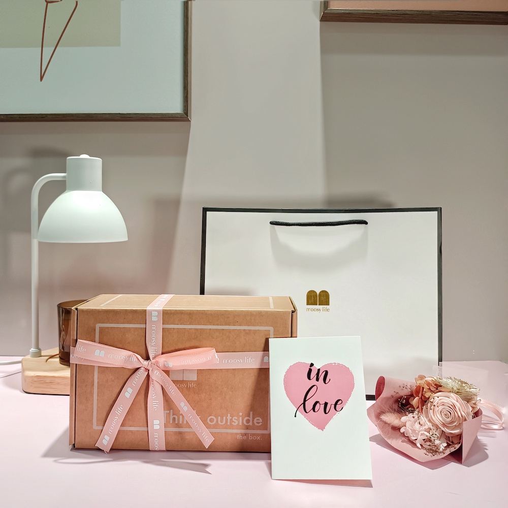 男生們今年想要超越一百分的話,不妨加購目喜貼心準備好的包裝提袋、吿白永生花束及卡片,