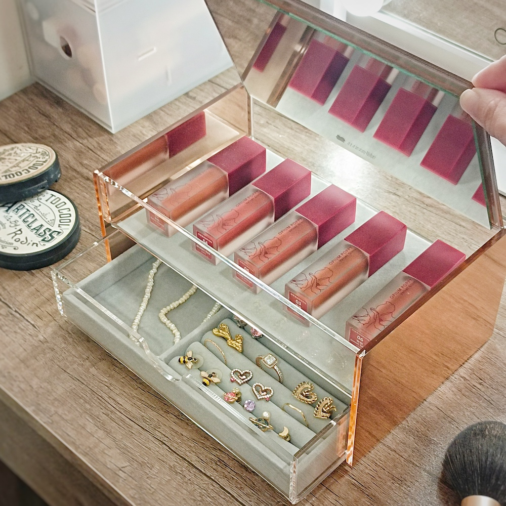 我今年就送了自己一個目喜設計的玫瑰金雙層鏡面珠寶收納盒禮物組!