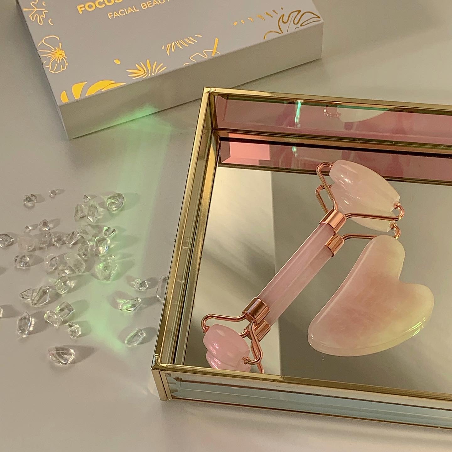 粉色天然粉晶臉部滾輪及刮痧板,時常拿起來按摩臉部肌膚,有效舒緩、放鬆緊繃的肌膚適用於臉部、背部、腿部及手部。質感超好使用起來非常療癒又舒壓
