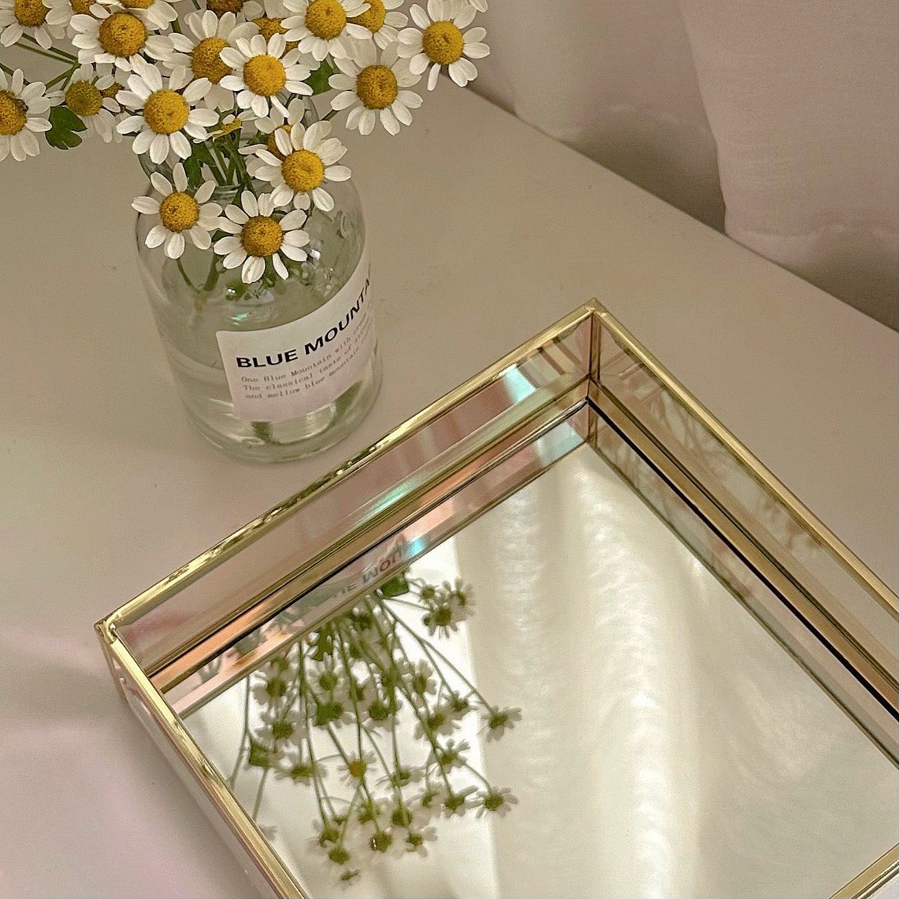 鏡面加厚玻璃設計的極光托盤,在不同的光線不同的角度,都有不同的美感折射出絢麗的極光。不僅可以收納自己的保養品、化妝品、療癒小物外,還可以加購白水晶當消磁盤。