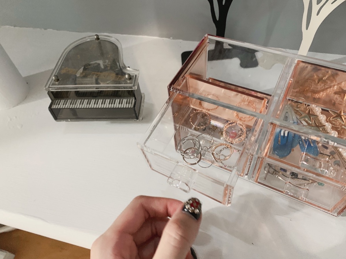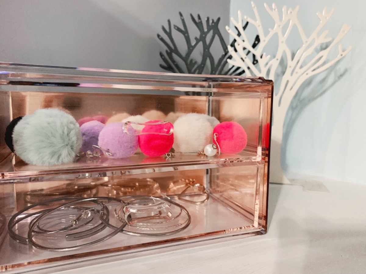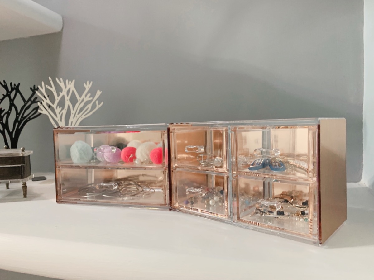 較大的抽屜我決定用來放一下體積也相對較大的耳環小物們