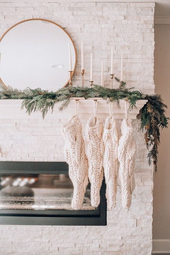 家中色調若是以白色、淺色為主,不妨以銀色、米白色、金色色調的燈泡,和聖誕襪為主角!