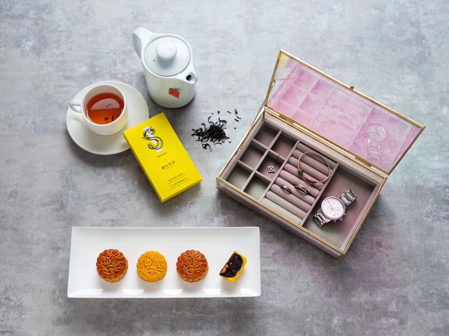月餅及茶葉放入美麗的收納盒當作贈禮,吃完美食之後的玻璃和可以放入心愛的首飾